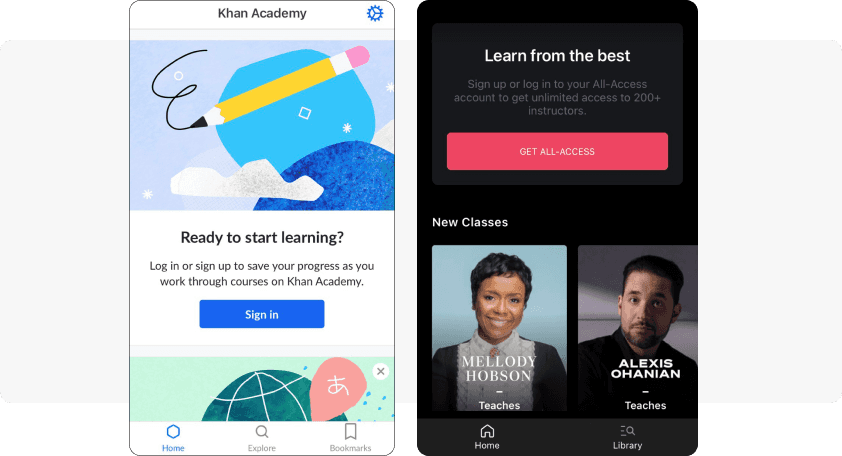 When it comes to nudging users to register in your educational app, apply the same WIIFM approach as for push notifications opting-in prompts. Highlight the advantages and value that users gain from creating an account. You may want to encourage users by saying that registered members gain access to personalized learning content, progress tracking, and the ability to save their achievements.