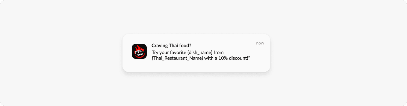 ⚡First, our food delivery app sends a push notification during a user’s lunch break that suggests ordering lunch.
