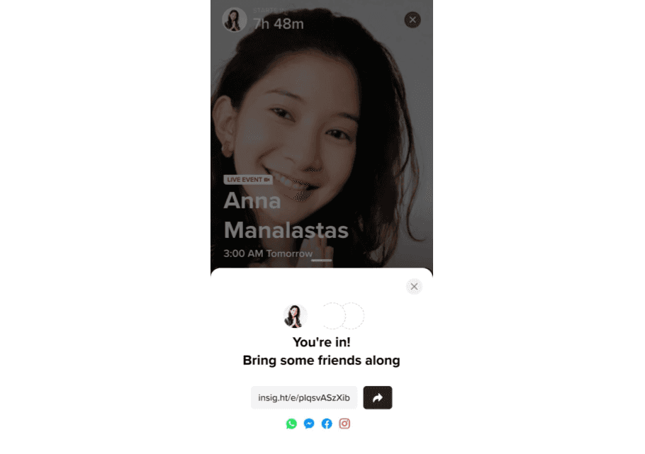 Take Insight Timer as an example. It functions as a subscription-based app, but it also has to think in terms of growing its community to support their teachers who work for donations. So once a user signs up for an upcoming event, the app suggests that the user promotes it among their friends.